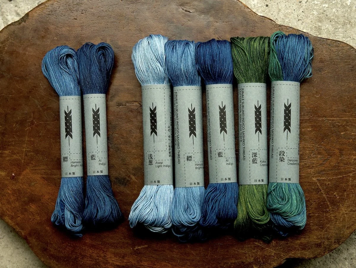 適度に毛羽が残るふっくらとした刺し子糸は使い込むことで布とがっちり一体化していくので補修などに最適です。さらに藍の色素が何層にも付くことで糸自体の強度が増し、晒しの状態より丈夫になります。