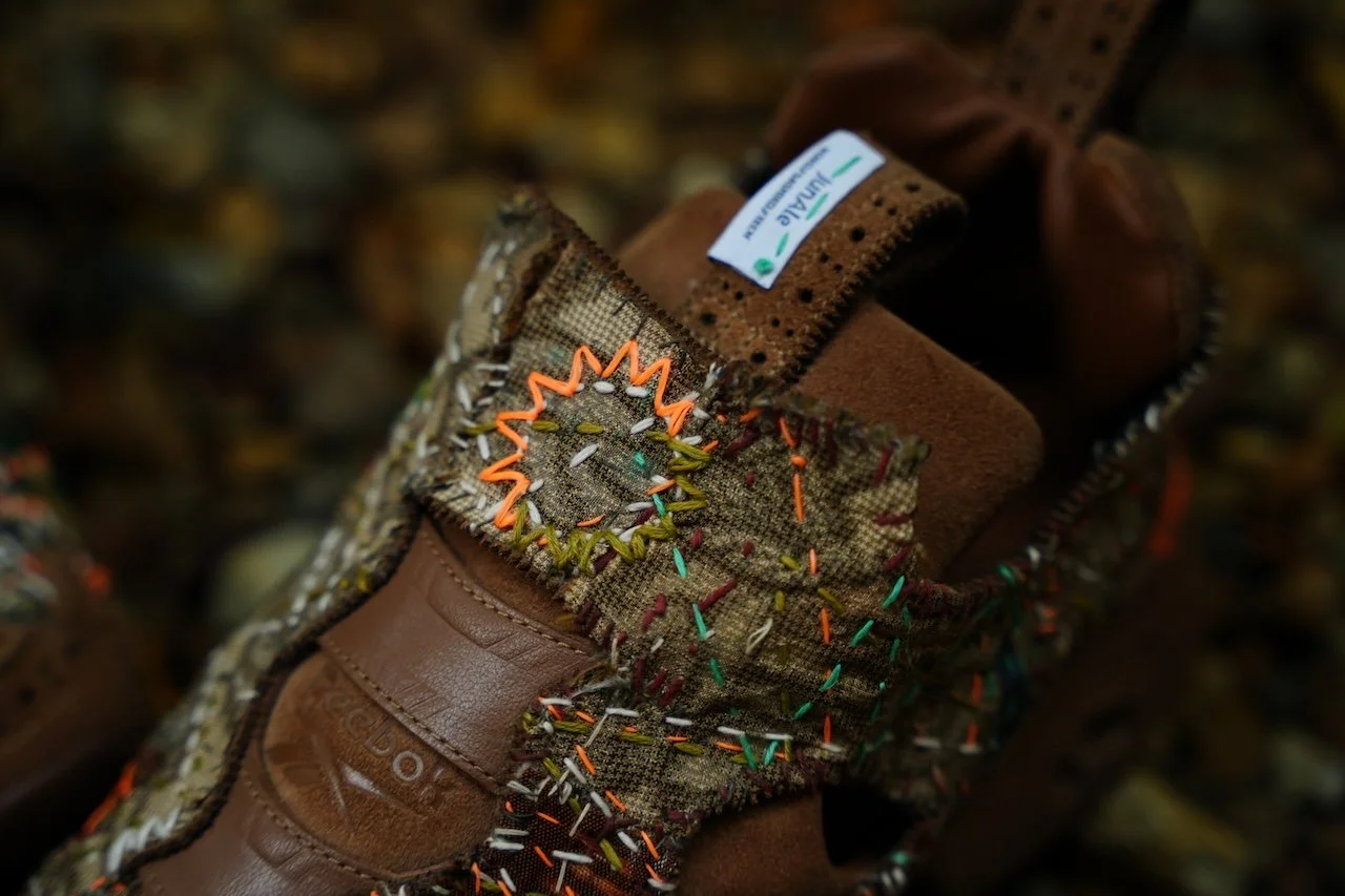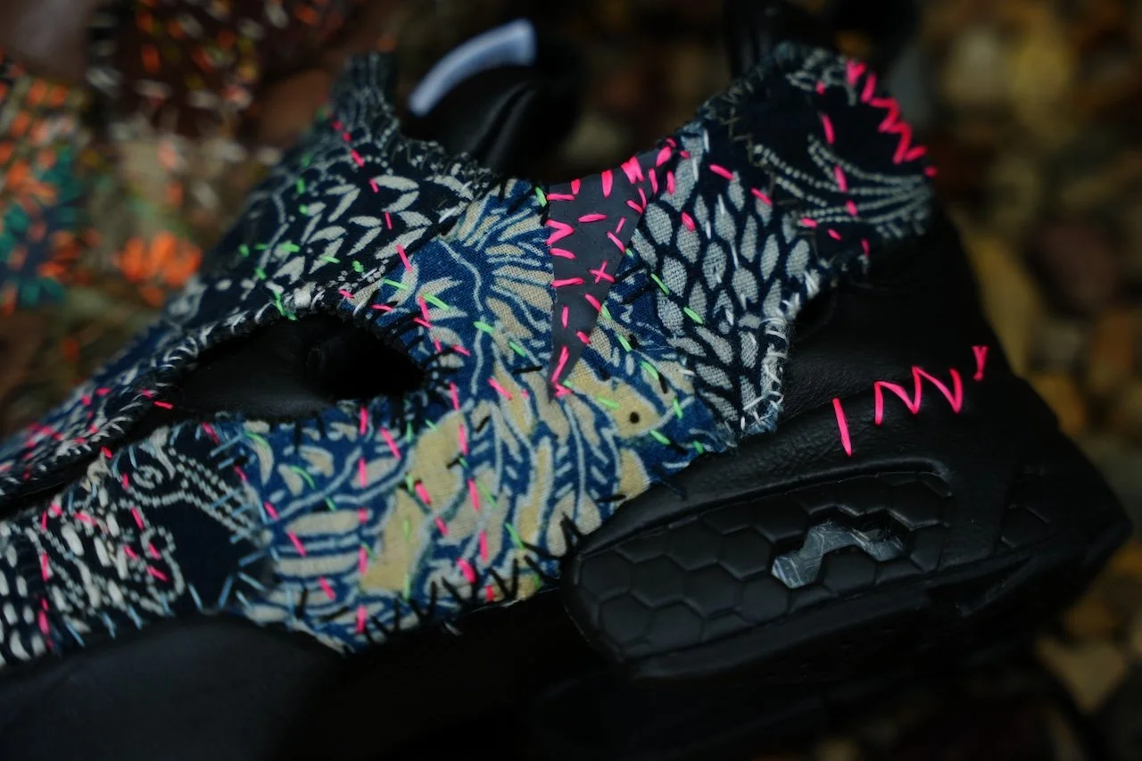 Medallion details, pinking, leather uppers, a Pump Fury without the pump—this tech sneaker was already filled with EG’s essence. I was excited to see how sashiko would merge with it.